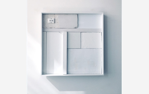 40 X 40 cm - Wood - granit stone - rubber - ceramic - felt - perfume packaging - Acrylic paint.